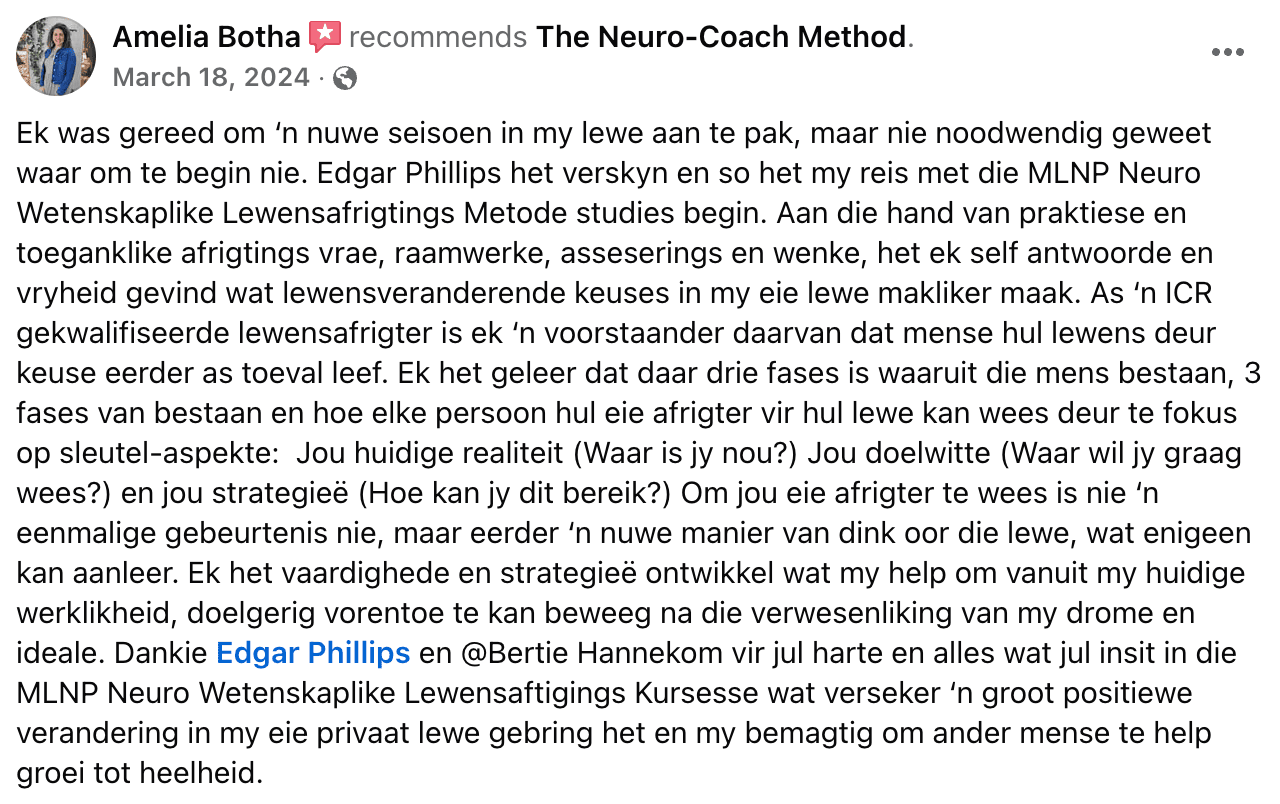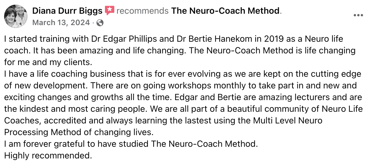 The Neuro-Coach Method is 'n unieke afrigtingsmodaliteit wat